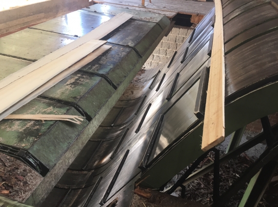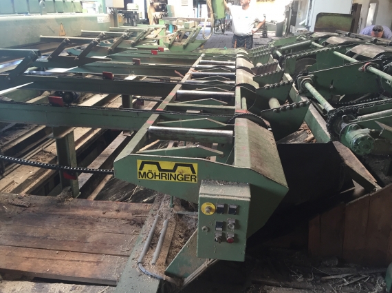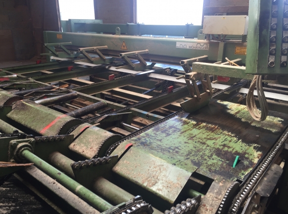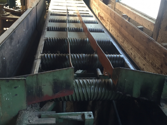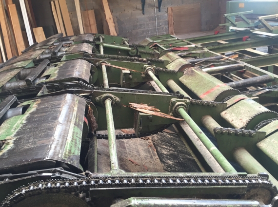 - Outfeed separator conveyor with riving knives.